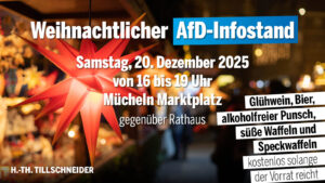 Oliver Kirchner, Florian Schröder und ich selbst werden kurze Vorträge über die Politik der Landtagsfraktion halten und uns den Fragen der Bürger stellen. Besondere Aufmerksamkeit gilt den Themen Gaza/Ukraine-Krieg, Masseneinwanderung und Innere Sicherheit.
